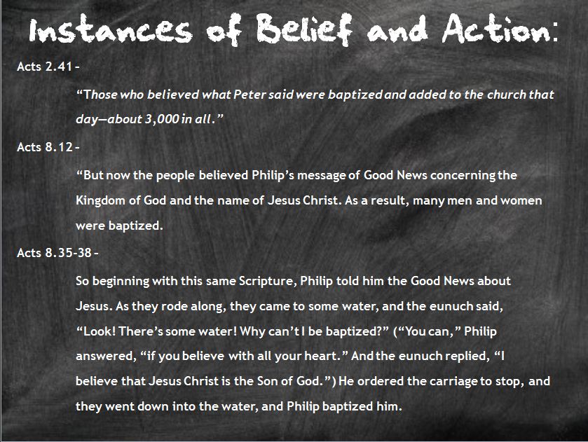 Each party played a part in a person becoming a Christian and getting saved. Look again at verse 17. Paul makes it clearly known that his primary purpose was to plant the seeds, present the gospel to the Corinthians so that God’s Word could begin moving in them to bring about a decision of placing their faith and lives in Christ. Baptism is a marker event of a person becoming a Christian. It signifies that a person is crucifying their old self, so that they can live in Christ. It's seen as the identifying marker that a person has accepted Jesus (this is a position that is held across denominational lines). A person believes, repents, and is baptized. It's as simple as that. If you read through the book of Acts, every time a person made a decision to give their life to Christ, they were immediately baptized. Look here: